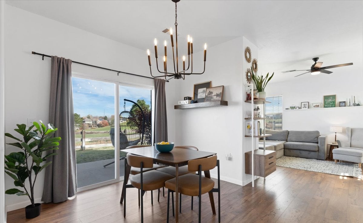 Welcome to this bright and inviting three-bedroom, two-and-a-half-bath corner-end home filled with natural light and beautiful golf course views from every room. The open layout features nine-foot ceilings, recessed lighting, and lighted ceiling fans in the living room and all bedrooms, creating a warm and welcoming atmosphere. The kitchen has been tastefully updated with new Quartz countertops, stainless steel appliances--including a refrigerator--and an oversized stainless steel sink. Newer wide plank LVP flooring and fresh interior paint give the home a modern, move-in-ready feel. You'll love the gas fireplace and built-in bookshelves in the living room, while enjoying beautiful views. The primary bathroom has a custom tile floor, a newer vanity, and lighting. Step outside to the large fenced backyard with a spacious patio overlooking the golf course--an ideal spot for morning coffee or evening gatherings and BBQs. This home also features a newer roof and siding. Enjoy maintenance-free living with landscaping and snow removal included, giving you more time to enjoy the good life. The attached one-car garage, including washer and dryer, window coverings, and convenient proximity to the neighborhood pool, make this home as practical as it is charming. With its thoughtful updates, easy-care lifestyle, and serene golf course setting, this home offers the perfect combination of comfort, style, and convenience.